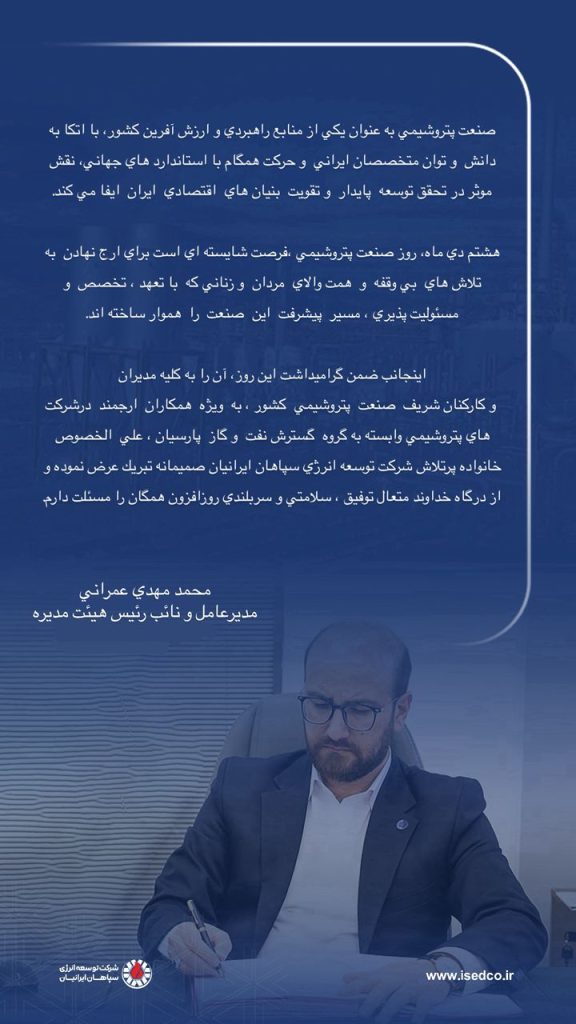 پیام محمد مهدی عمرانی به مناسبت هشتم دیماه، روز صنعت پتروشیمی